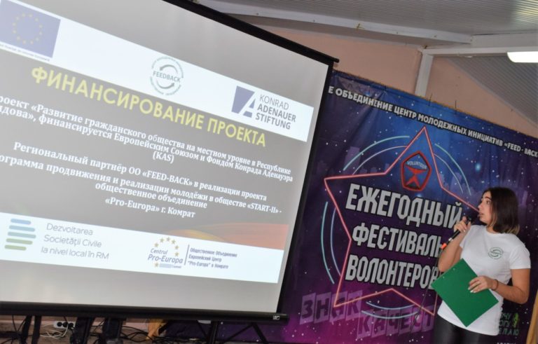 В декабре 2019 года Общественному объединению Центр молодежных инициатив «FEED-BACK» исполнилось четыре года. К этому событию был приурочен первый фестиваль волонтеров в Бессарабке … Читать далее ЦЕНТР МОЛОДЁЖНЫХ ИНИЦИАТИВ «FEED-BACK» ЗАПУСТИЛ НОВЫЙ ПРОЕКТ, В РАМКАХ КОТОРОГО 2020 ГОД БЫЛ ОБЪЯВЛЕН ГОДОМ ВОЛОНТЁРСТВА В г. БАСАРАБЯСКА.
