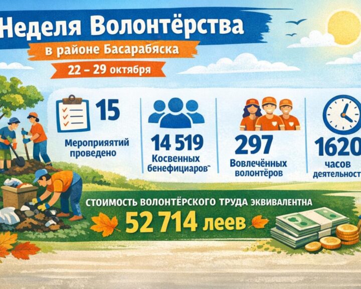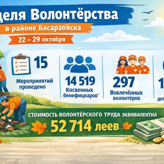 С 20 по 26 октября 2025 года в районе Басарабяска прошла Национальная Неделя волонтёрства, которая по своему содержанию и масштабу стала настоящей Неделей