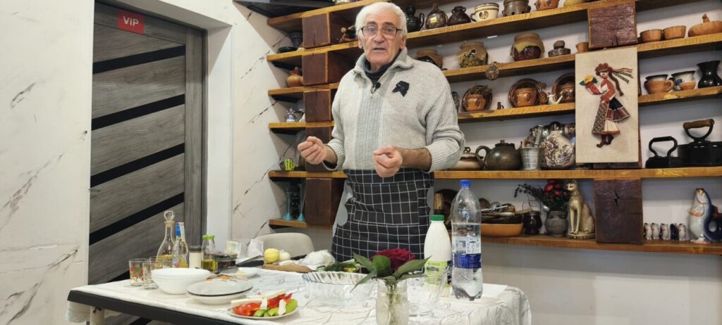 Сегодня нашим проводником в болгарскую кухню стал Юрий Иванович Петров, который родился и почти всю жизнь прожил в Бессарабке. По национальности он болгарин, и с большим удовольствием поделился с нами двумя блюдами, без которых трудно представить болгарский стол — шопской салатой и освежающим летним супом таратор.