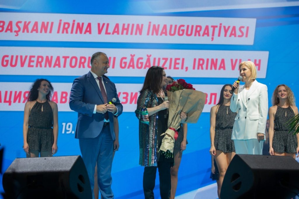 Далее на сцену поднялся президент Молдовы Игорь Додон, который в своей речи заверил новоизбранного башкана, что «с нашей стороны, со стороны руководства будет полная поддержка». «Мы знаем, что от нас ждут жители Гагаузии, и мы будем делать всё возможное, чтоб поменять и законы, которые нужно принять в Парламенте Республики Молдова», — сказал глава государства, уточнив, что будет принято решение о согласовании позиций по должностям в Гагаузии, которые назначаются с центра, с Исполкомом и властями Гагаузии.