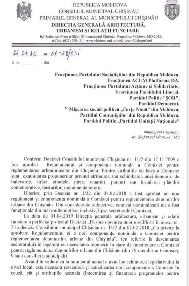 По словам либералов, такая просьба была направлена в архитектурное управление муниципия, а главный архитектор муниципия Светлана Доготару планирует уже заседание по этому запросу.