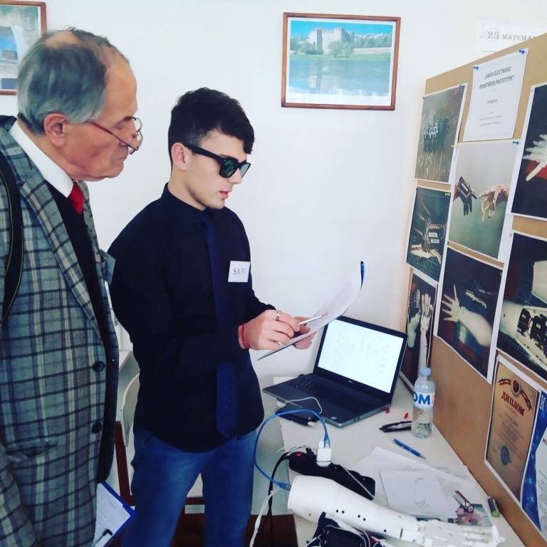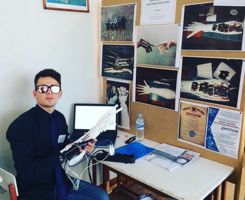 На суд жюри Дину Путере представил проекта в секции «Прикладные науки» «Прототип человеческой руки». Защищал свой проект на английском языке.