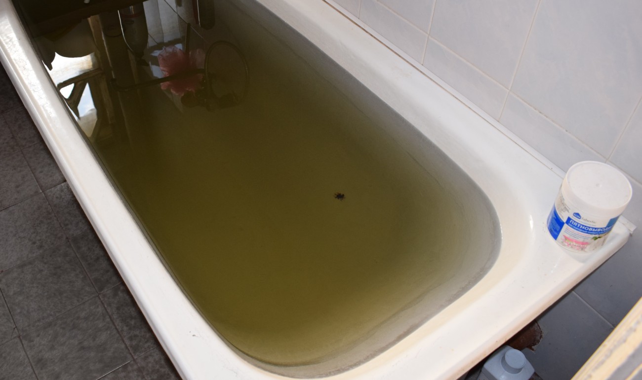 У жителей микрорайона Фламында уже неделю из крана течет желто-коричневая вода. Если наполнить ванну или прозрачную ёмкость, отчётливо виден слой темного осадка на дне. Те, у кого стоят фильтры по очистке воды хоть как-то могут обезопасить себя от механических примесей, однако и после фильтрации вода продолжает оставаться желтого цвета и применение её в пищу явно представляет опасность для здоровья. Стоит предположить, что и купаться в ней тоже рискованно. Никто не знает, что за примесь попадает в воду и как она может воздействовать на организм человека.