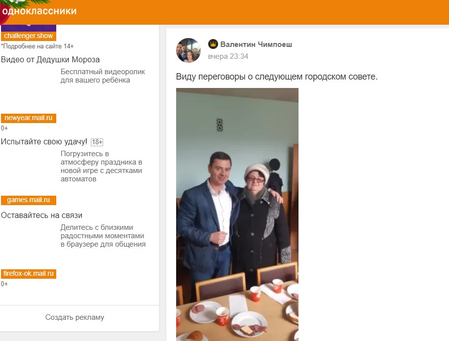 «ВИДУ ПЕРЕГОВОРЫ О СЛЕДУЮЩЕМ ГОРОДСКОМ СОВЕТЕ» — прокомментировал фото Валентин Чимпоеш на своей страничке в «Одноклассниках»